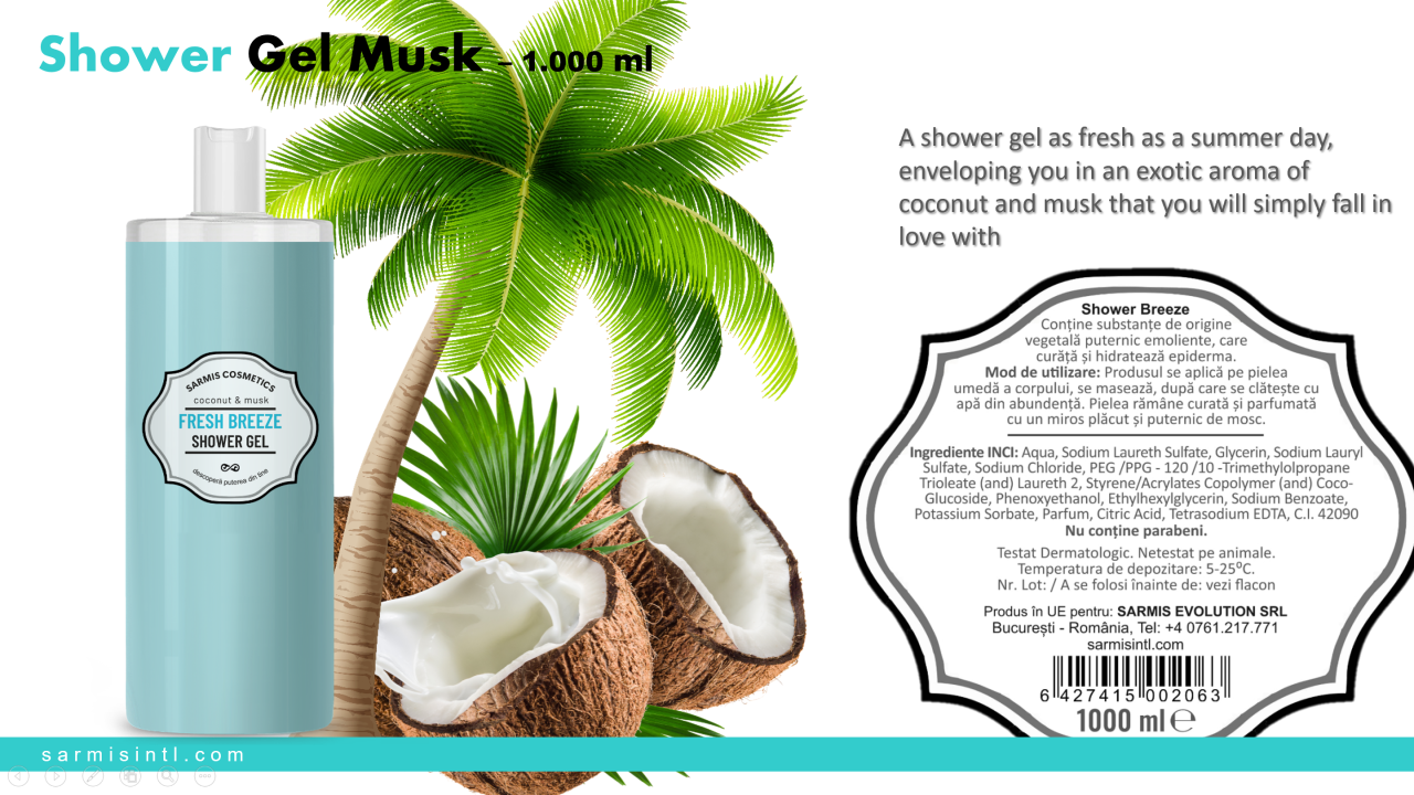 Gel de dus - Fresh Breeze - Musk - 1000 ml