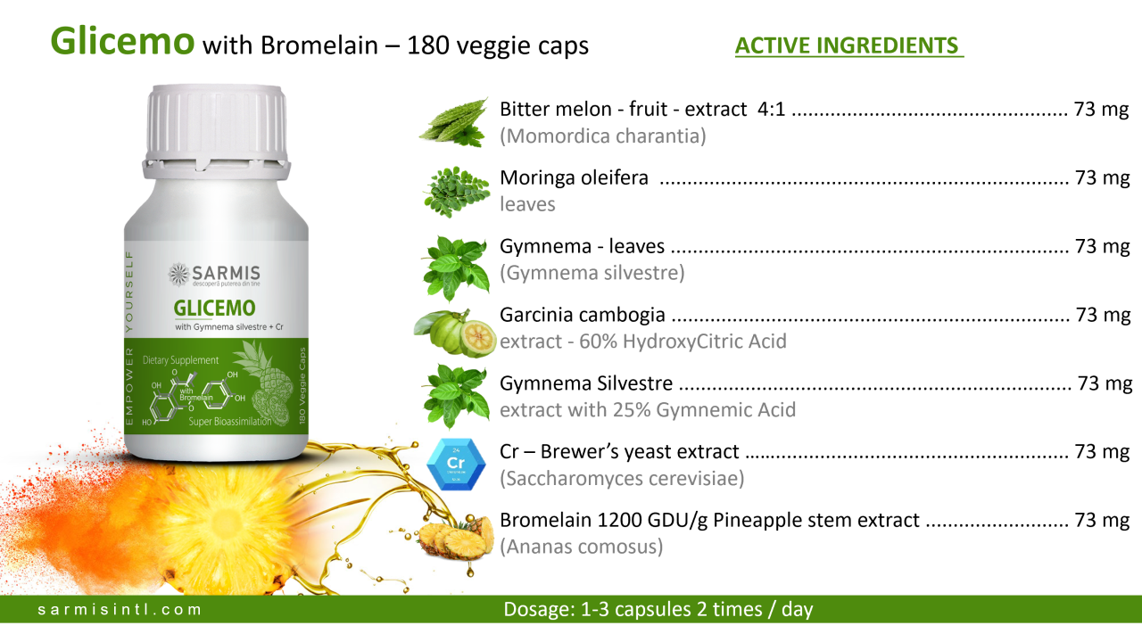 Glicemo cu Bromelaina - 180 cps veg